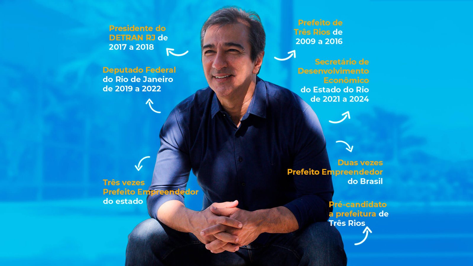 Vinicius Farah é candidato a prefeito de Três Rios, ex-secretário de Desenvolvimento Econômico do Estado do Rio de Janeiro e ex-Deputado Federal. Com uma carreira marcada pela promoção do empreendedorismo e desenvolvimento local, Farah tem uma visão centrada na geração de emprego, direitos dos idosos e pessoas com deficiência, e modernização das relações de trabalho.